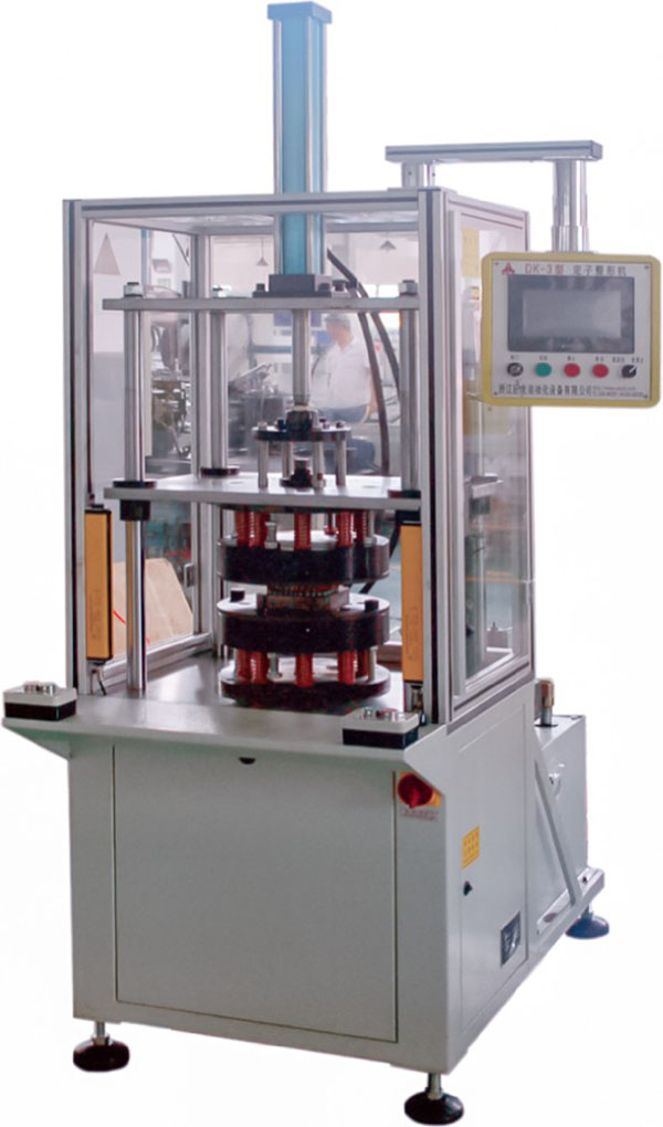 This machine is suitable for AC induction motor lashing the two ends of the coil after finishing. One-piece hydraulic station as power, speed uniformity, shaping power and stability, Mitsubishi PLC program-controlled, touch screen display, into the workpiece automatically down in place plastic, close to control the trip, double-key start, single step, continuous work, easy to use.