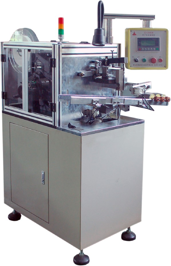 Suitable for rotor slot paper insertion of kinds of micro motor, electric tool and auto motorcycle motors.Use motor and electromagnetism clutch arrester to drive mechanical operation,Chinese display interface, PLC programming,automatic loading and location, cutting off,shaping, insertion and parting, finish in one time.